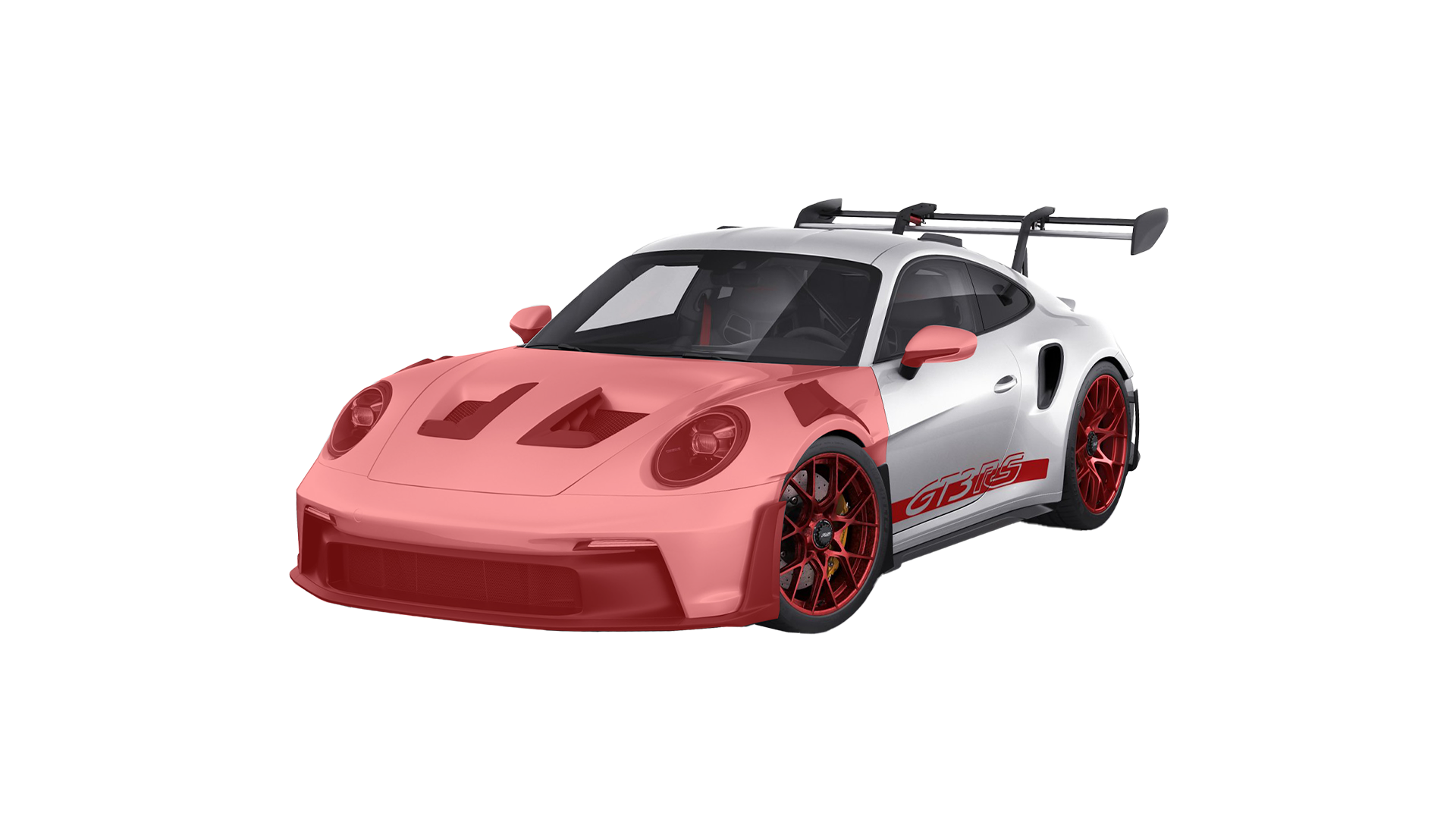 The Track Package covers all of the front facing angles of the car, to protect against rock chips and other typical track-wear. Backed by a 10-year manufacturer warranty against hazing, bubbling, and lifting. This package has a coverage area similar to the Full Front Package, with additional coverage for the rocker panels, A-pillars, and approximately six inches of the roofline.